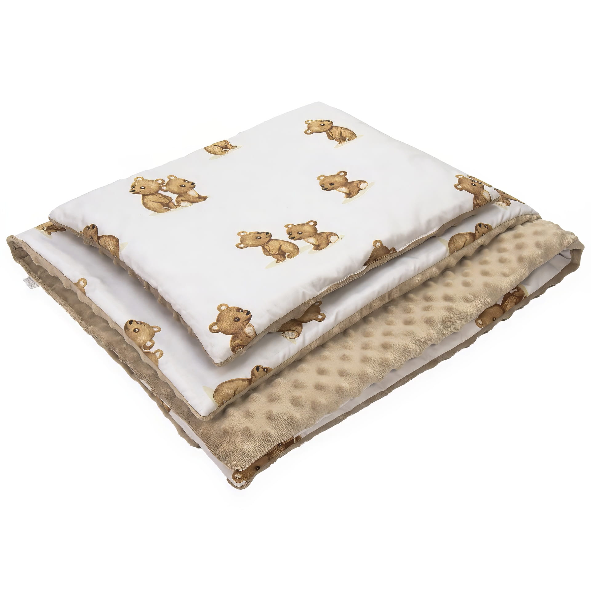 Kocyk 135 x 100 cm + podusia - Teddy / Minky kawowy