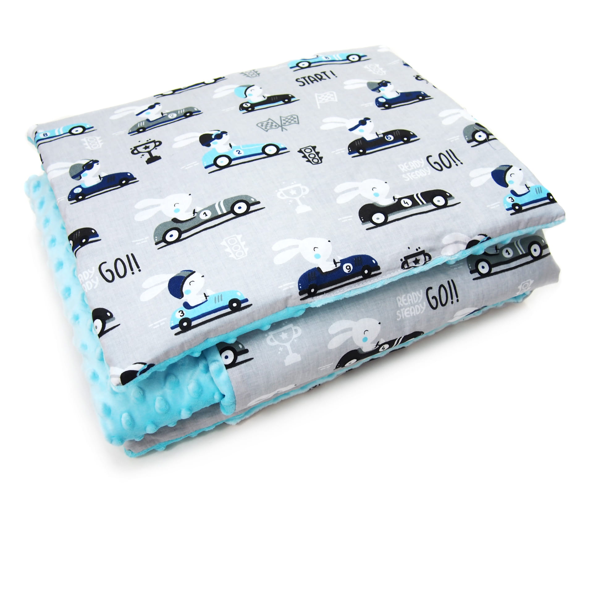 Kocyk 75 x 100 cm + podusia - Króliczki szare / Minky turkus