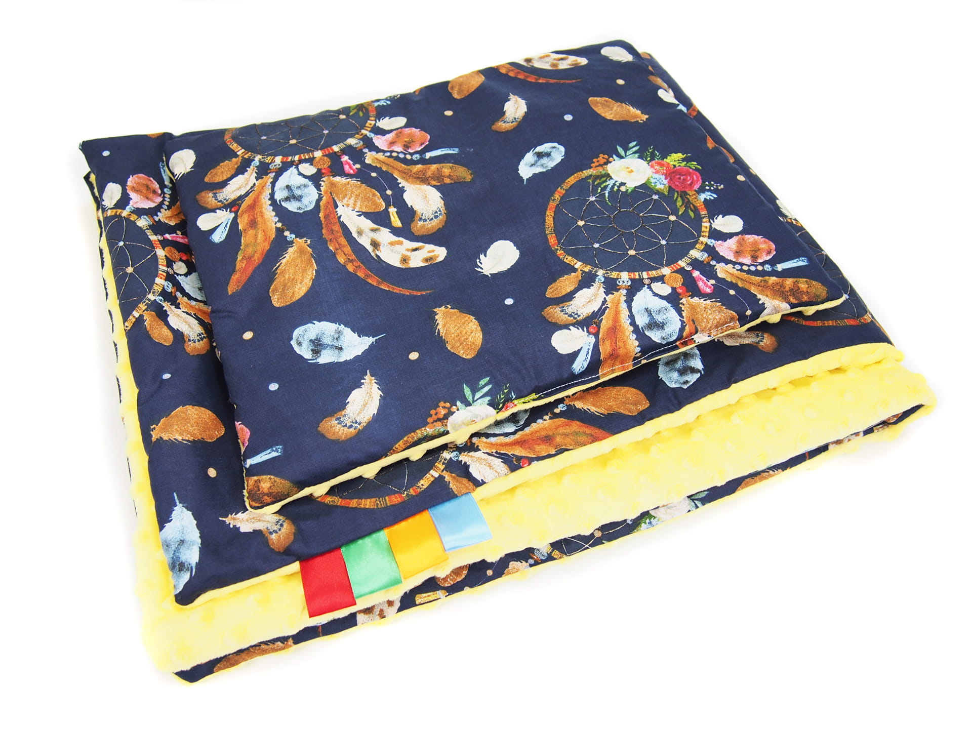 Kocyk 75 x 100 cm + podusia - Łapacz snów granatowy / Minky żółty