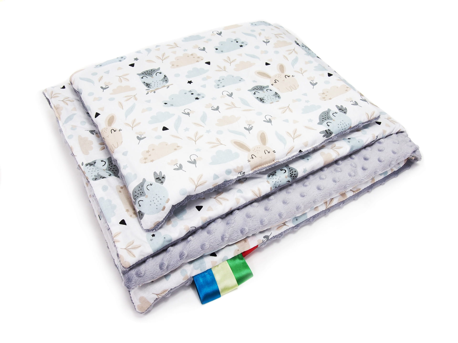 Kocyk 75 x 100 cm + podusia - Polana / Minky jasny szary