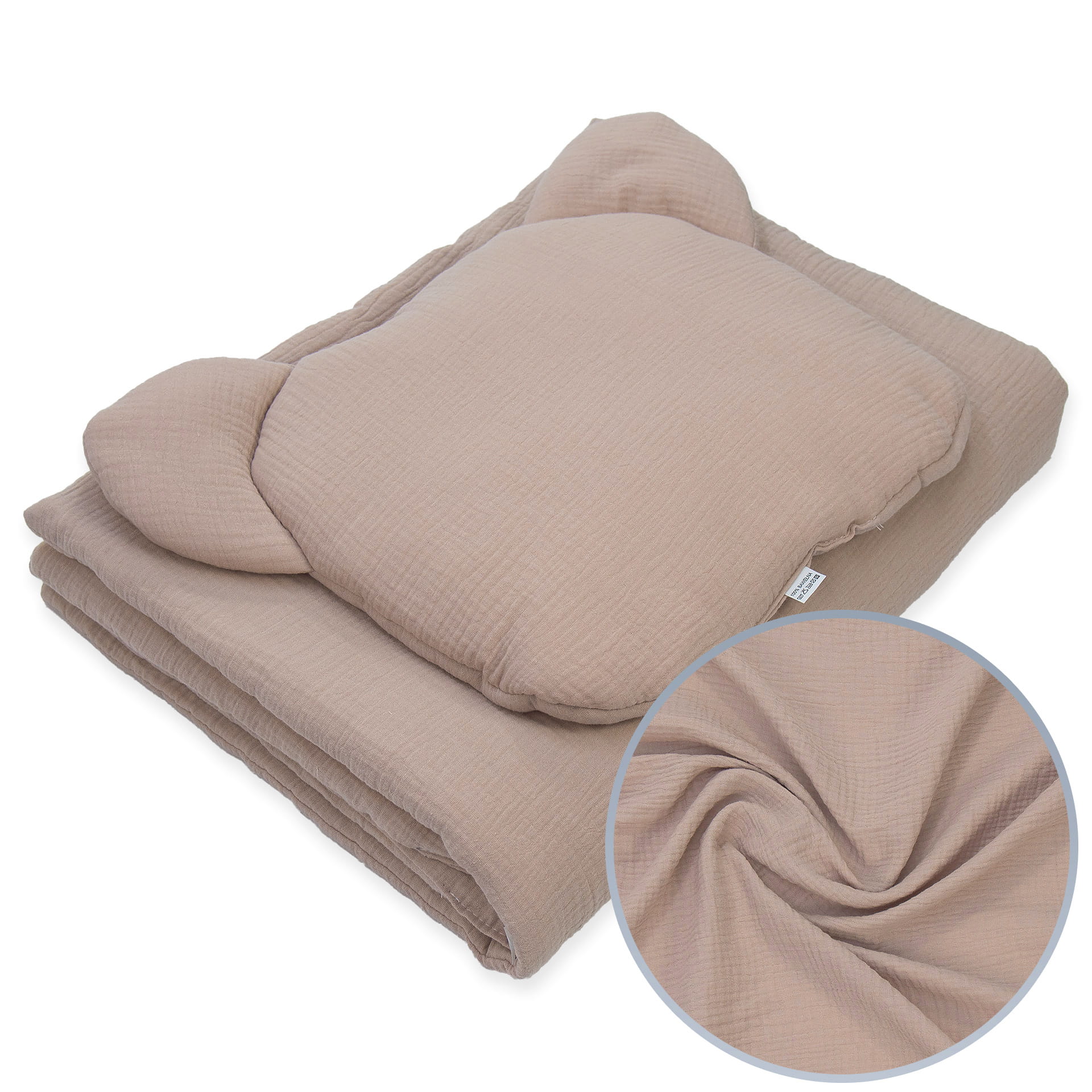Kocyk Muślinowy 50 x 75 cm + podusia Miś 35 x 40 cm