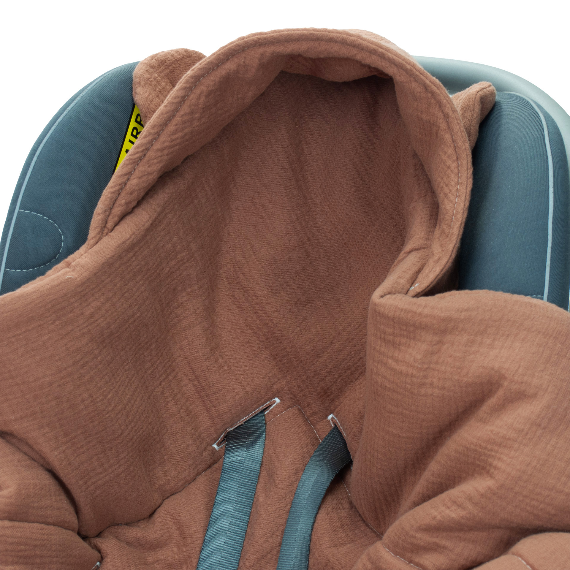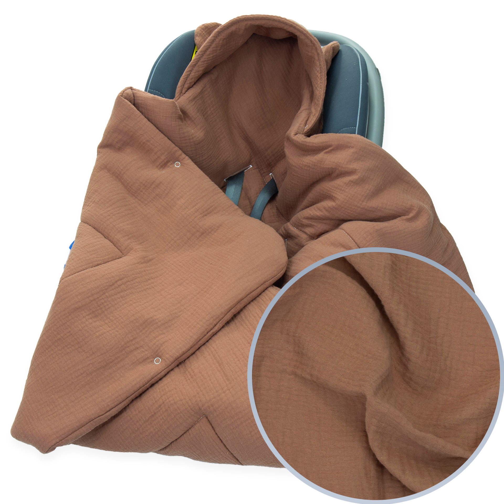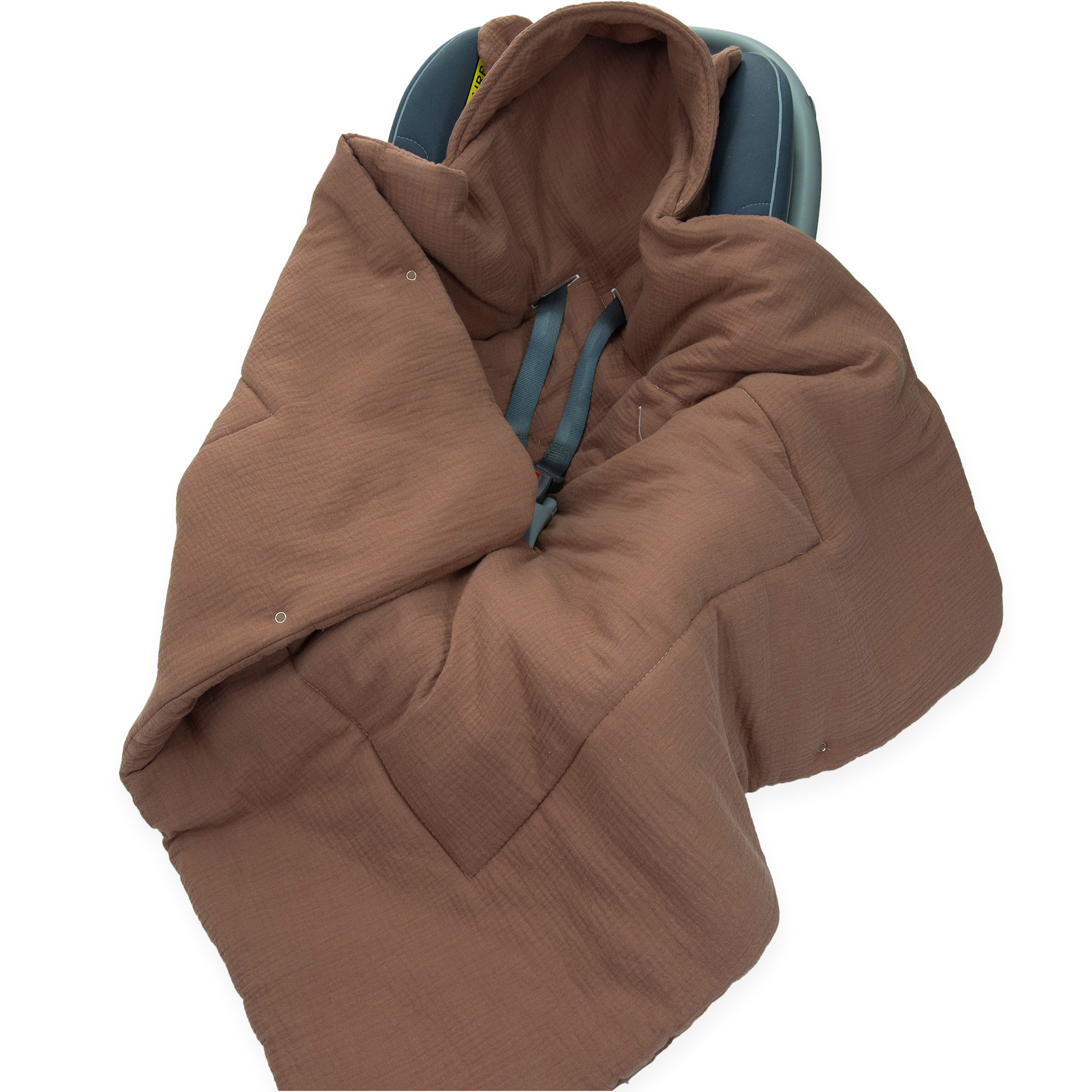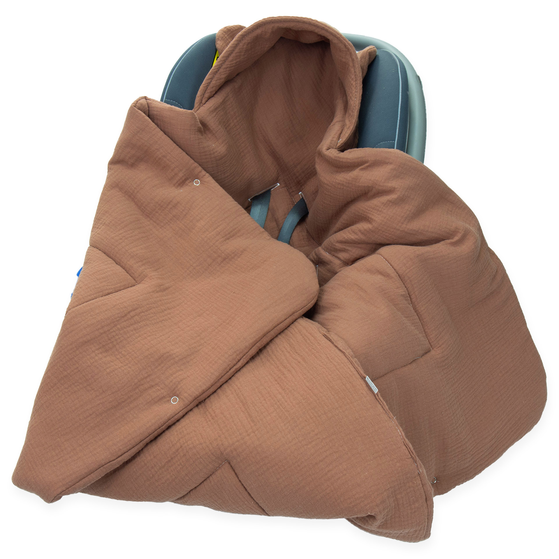 Kocyk do fotelika Muślinowy z uszkami Premium - Mocha Mousse
