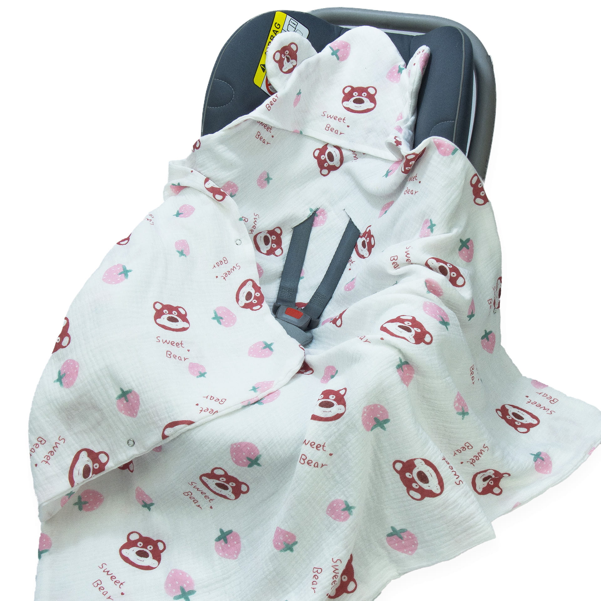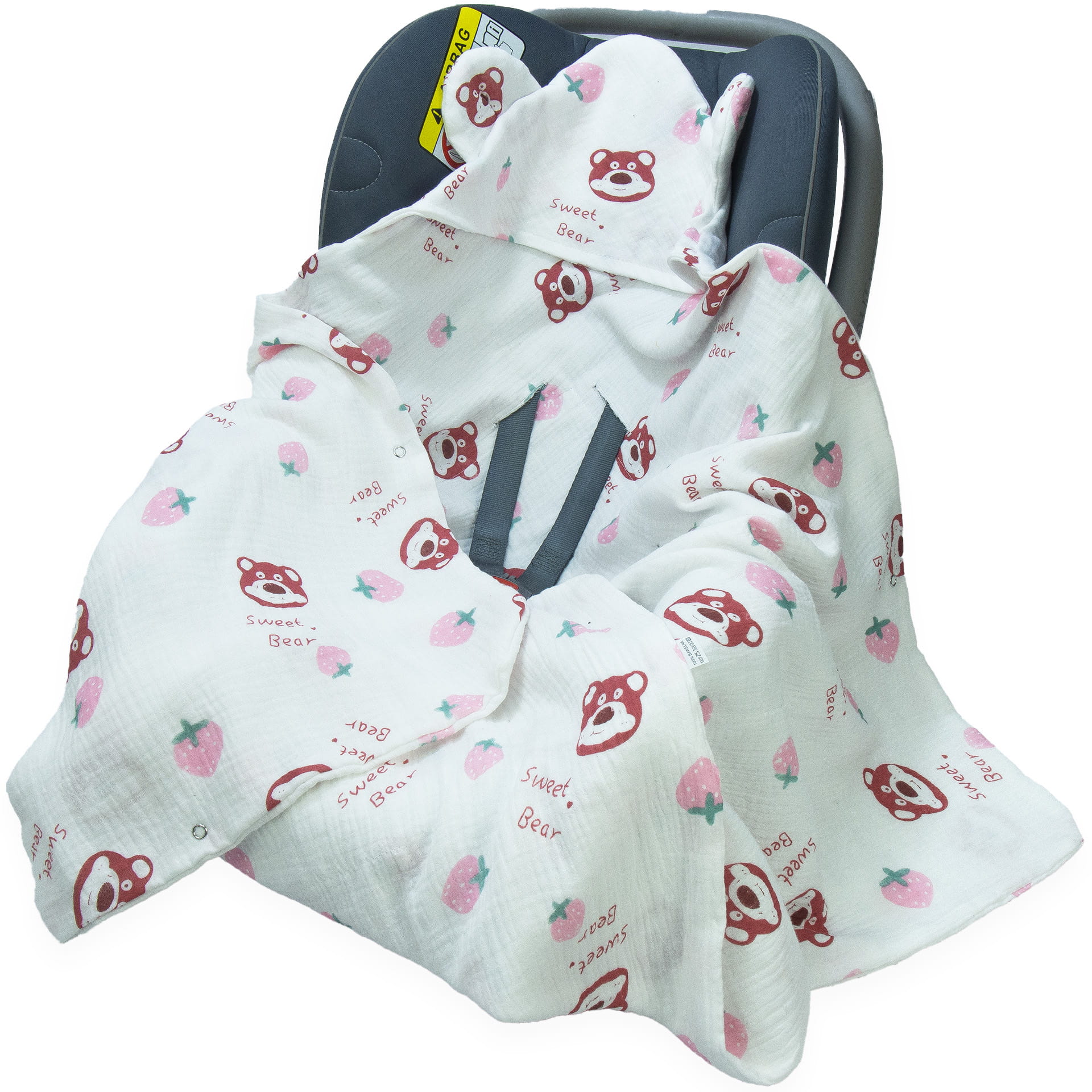 Kocyk do fotelika Muślinowy z uszkami Premium bez wypełnienia - Sweet Bear