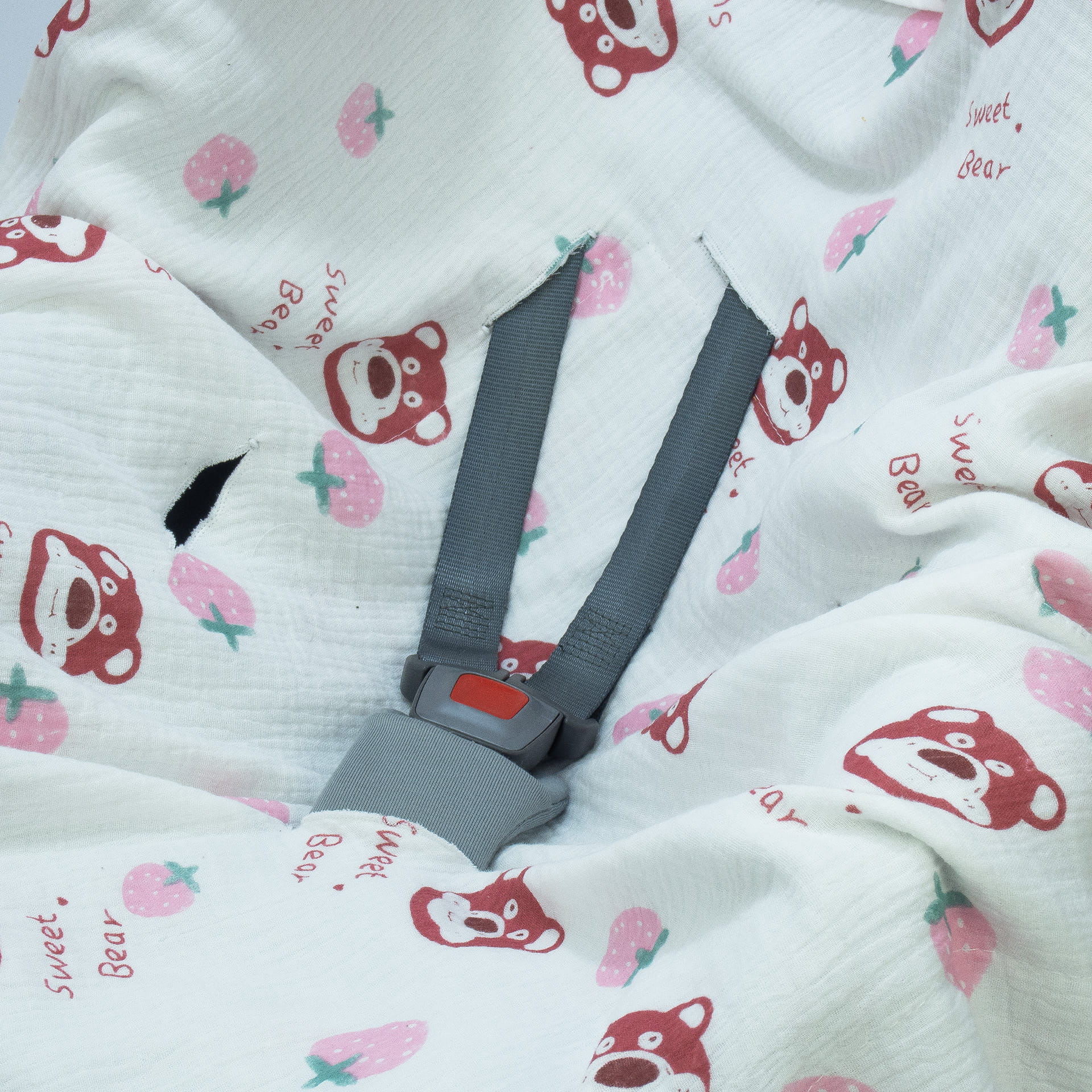 Kocyk został zaprojektowany z myślą o rodzicach w ruchu – pasuje do większości fotelików i nosidełek dzięki praktycznym otworom na pasy (3- i 5-punktowe) oraz napom ułatwiającym zapinanie. Łatwo go złożyć i schować do torby, a w razie potrzeby – wrzucić do pralki.