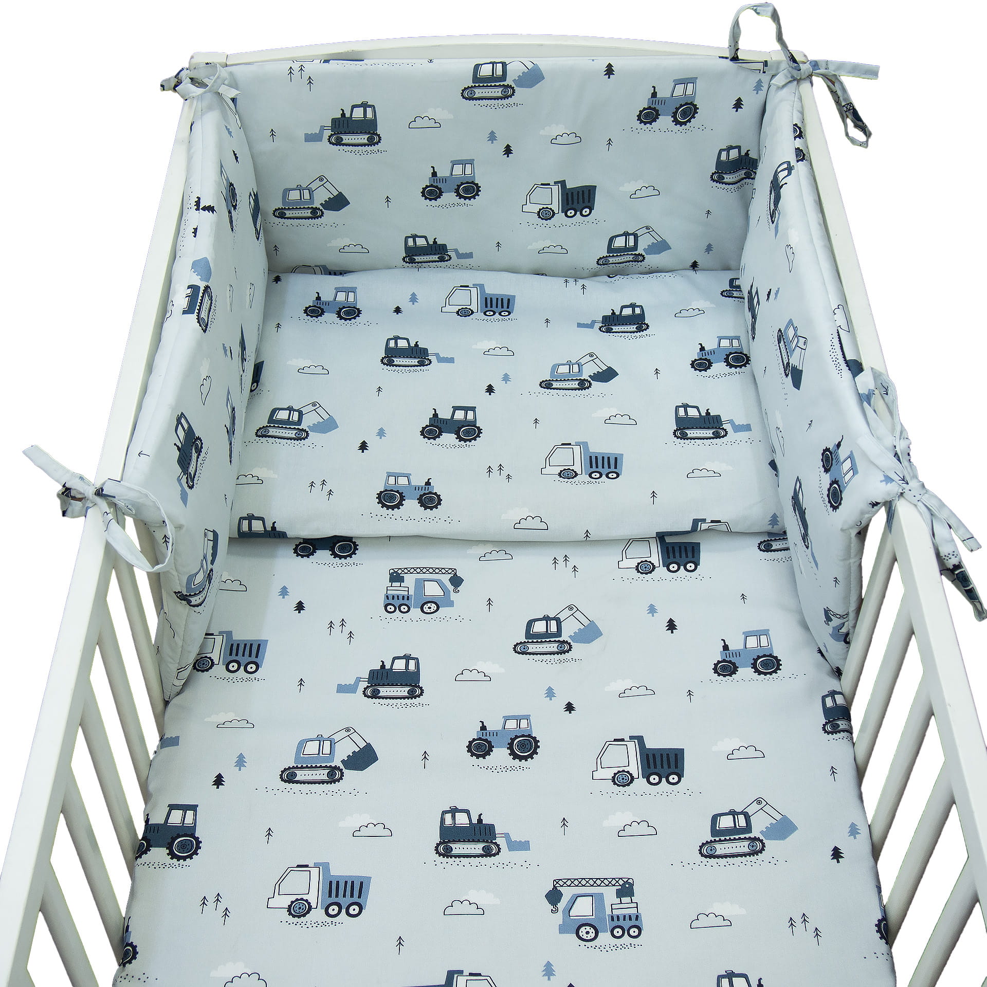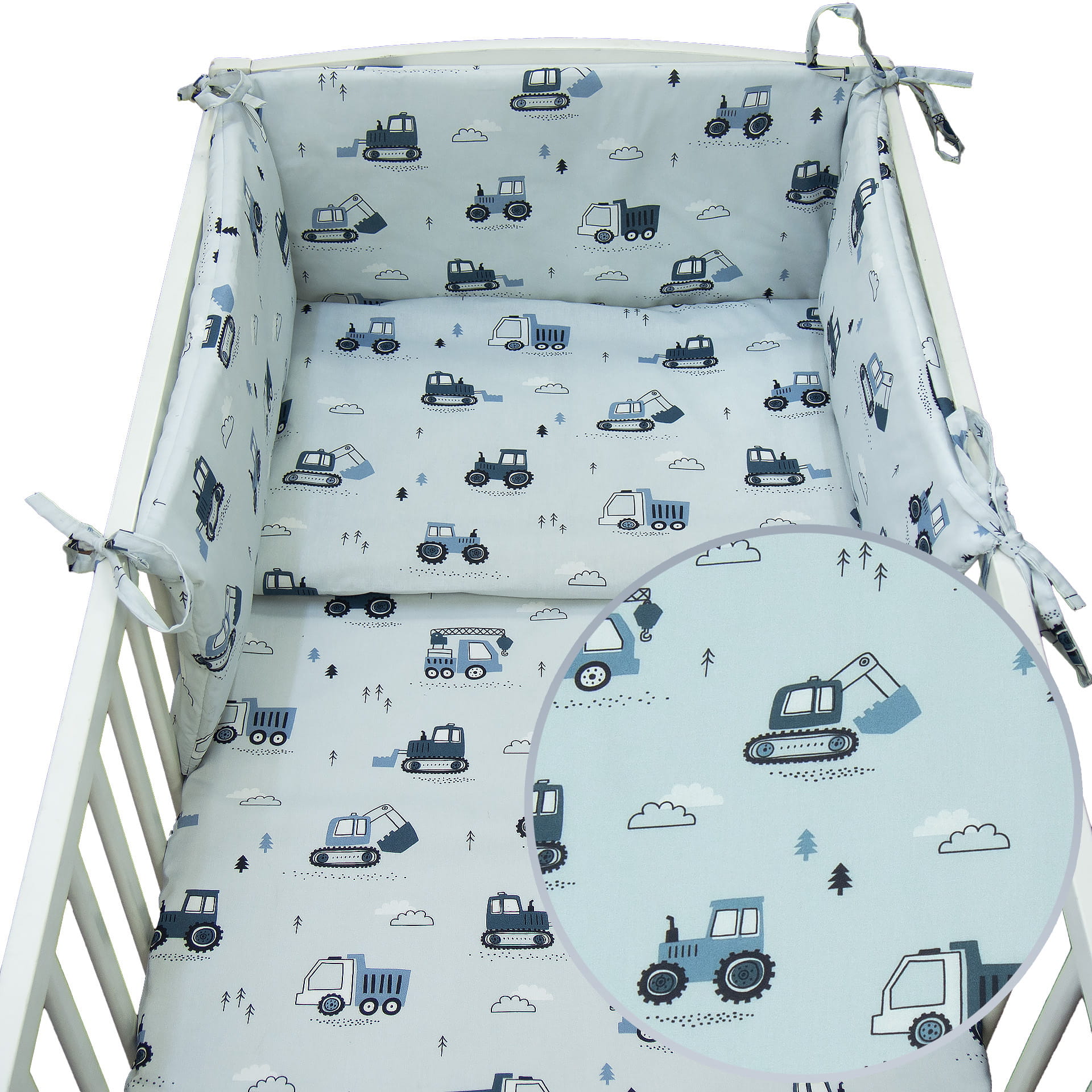 Pościel 120 x 90 + ochraniacz - Koparki szare