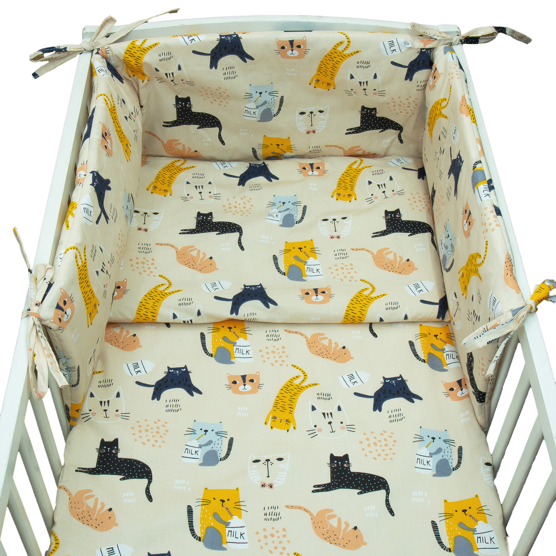 Pościel 120 x 90 + ochraniacz - Kotki z mlekiem beżowe