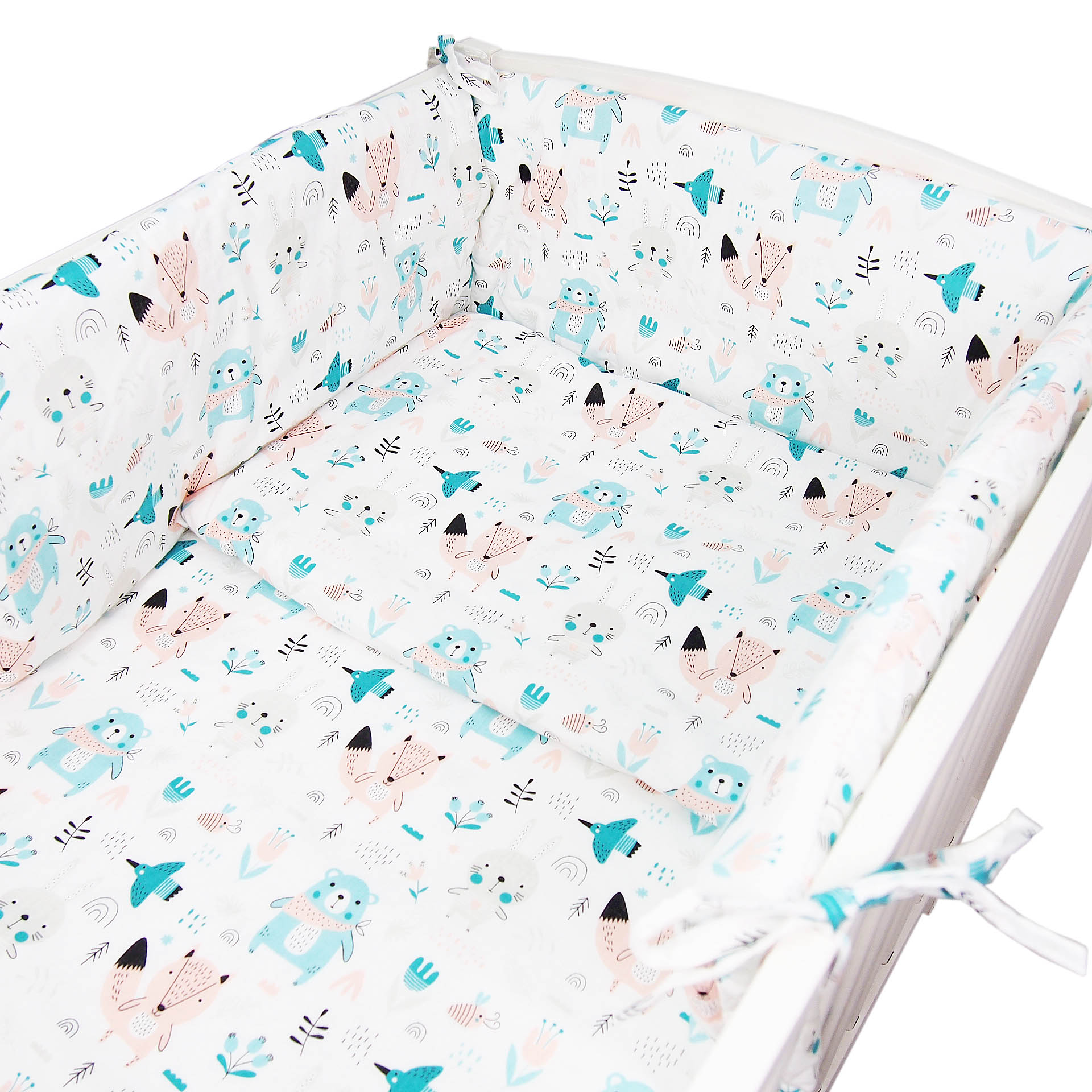 Dwuczęściowa pościel bawełniana do łóżeczka w ładnych dziecięcych wzorach.