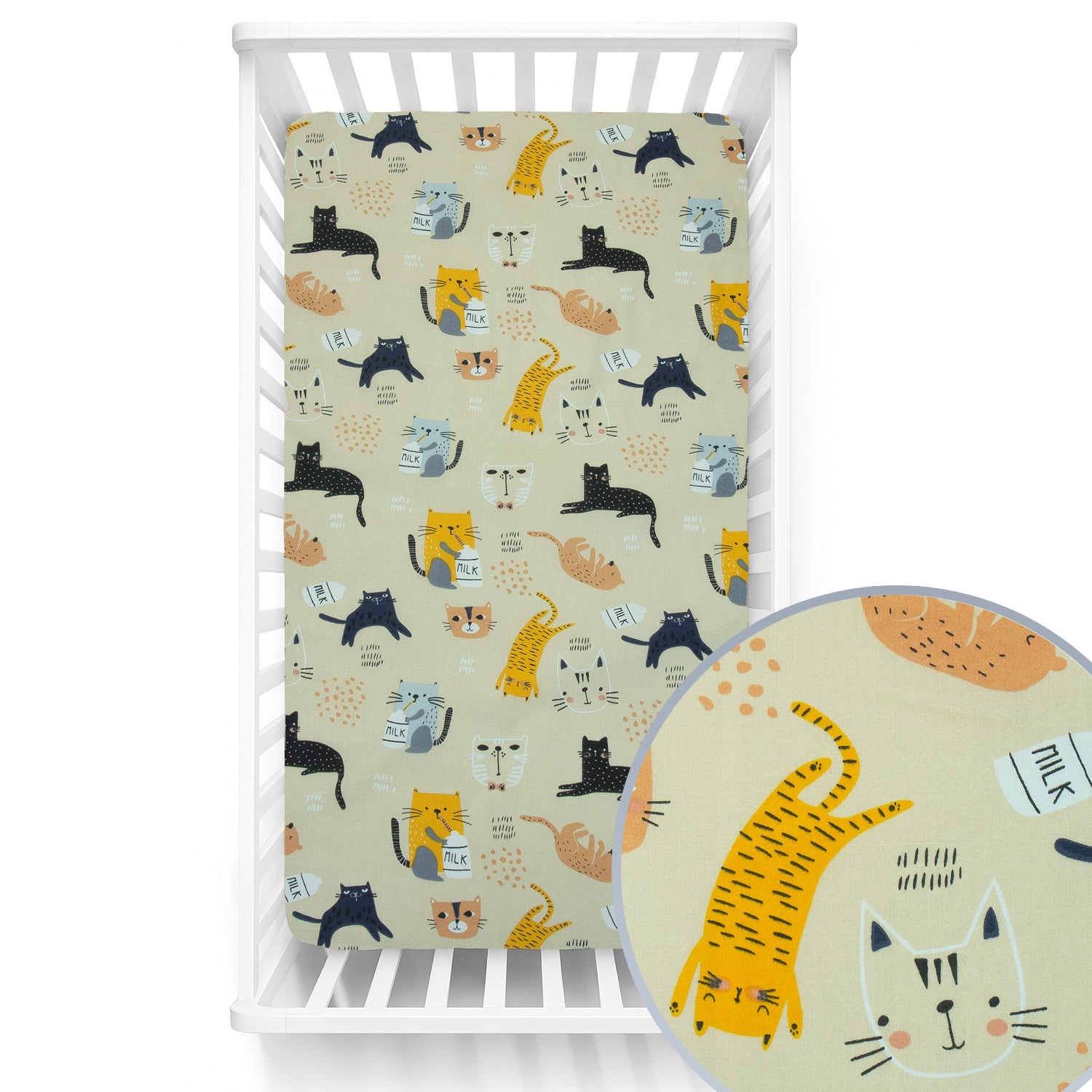 Prześcieradło 120 x 60 - Kotki z mlekiem beżowe