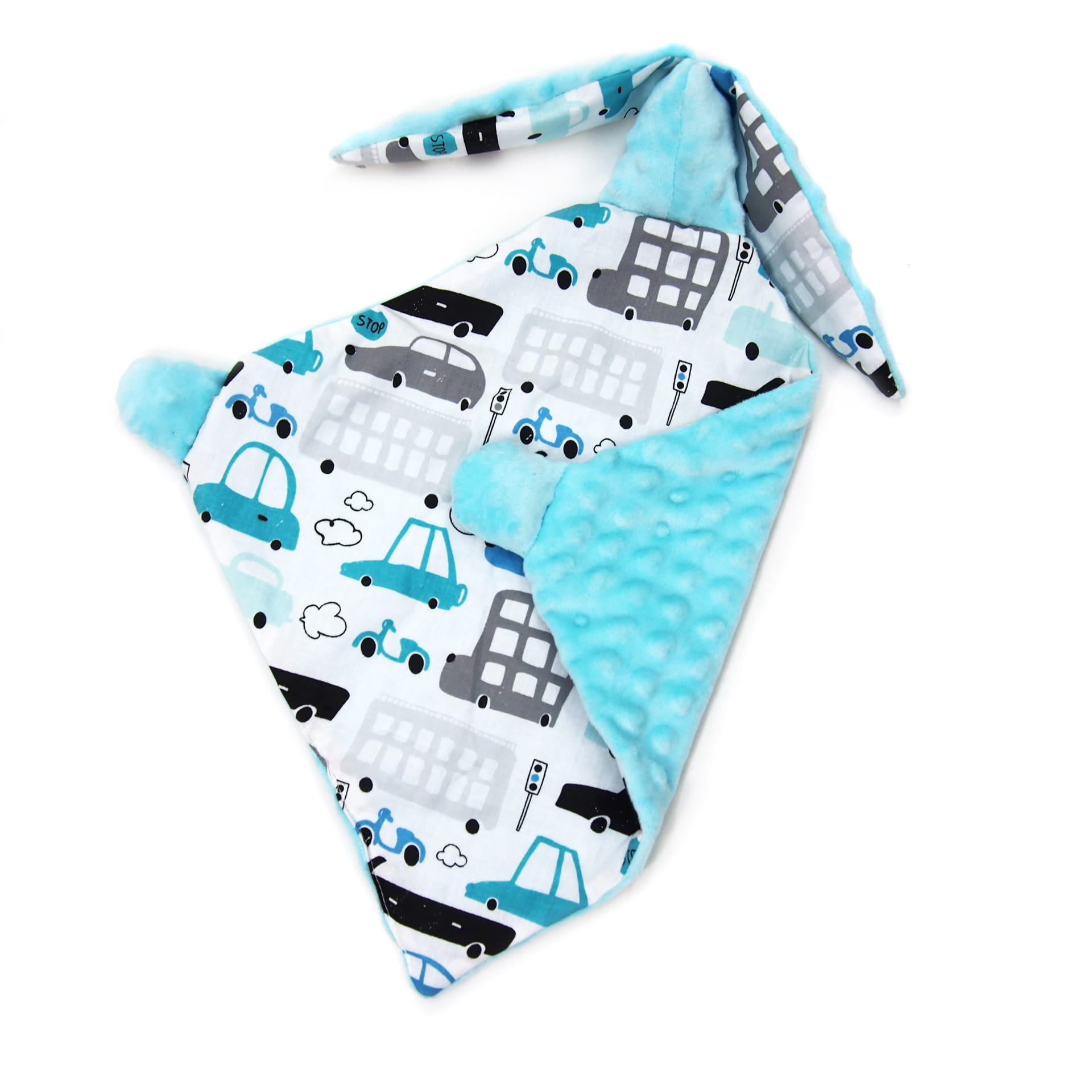 Przytulanka szmatka Króliczek - Autka białe
