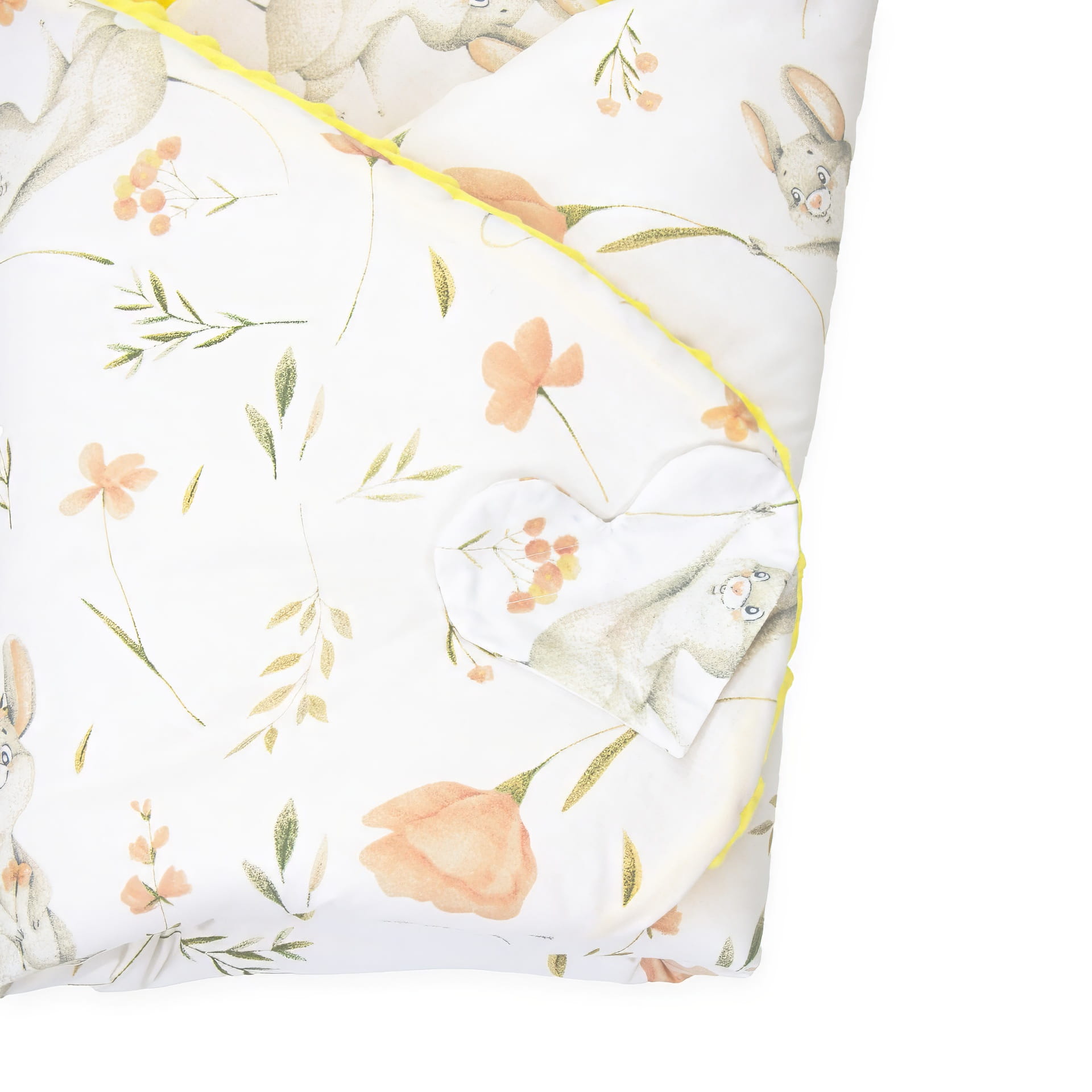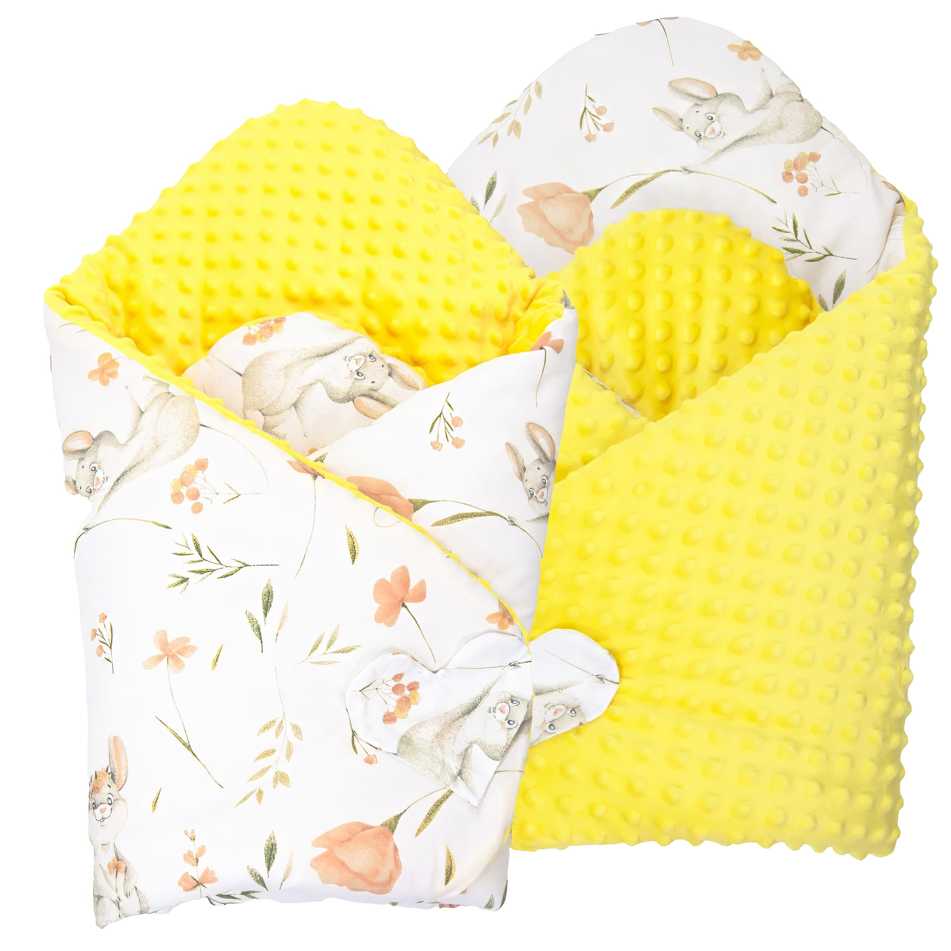 Rozłożony, nasz rożek może pełnić funkcję przytulnej kołderki, idealnej do otulenia maluszka. Jego zaokrąglone rogi dodają mu uroku i sprawiają, że jest bezpieczny dla delikatnej skóry dziecka.