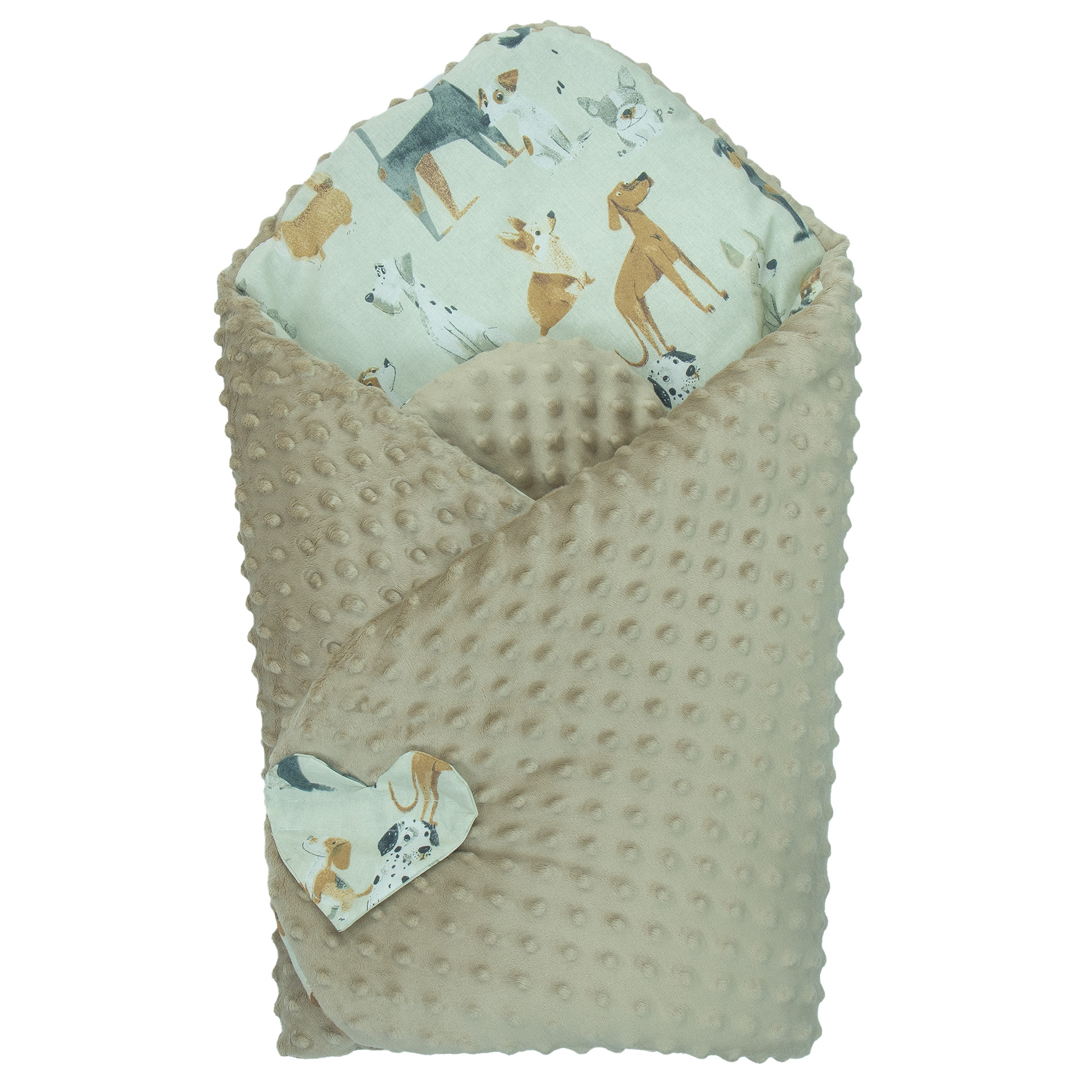 Rozłożony, nasz rożek może pełnić funkcję przytulnej kołderki, idealnej do otulenia maluszka. Jego zaokrąglone rogi dodają mu uroku i sprawiają, że jest bezpieczny dla delikatnej skóry dziecka.