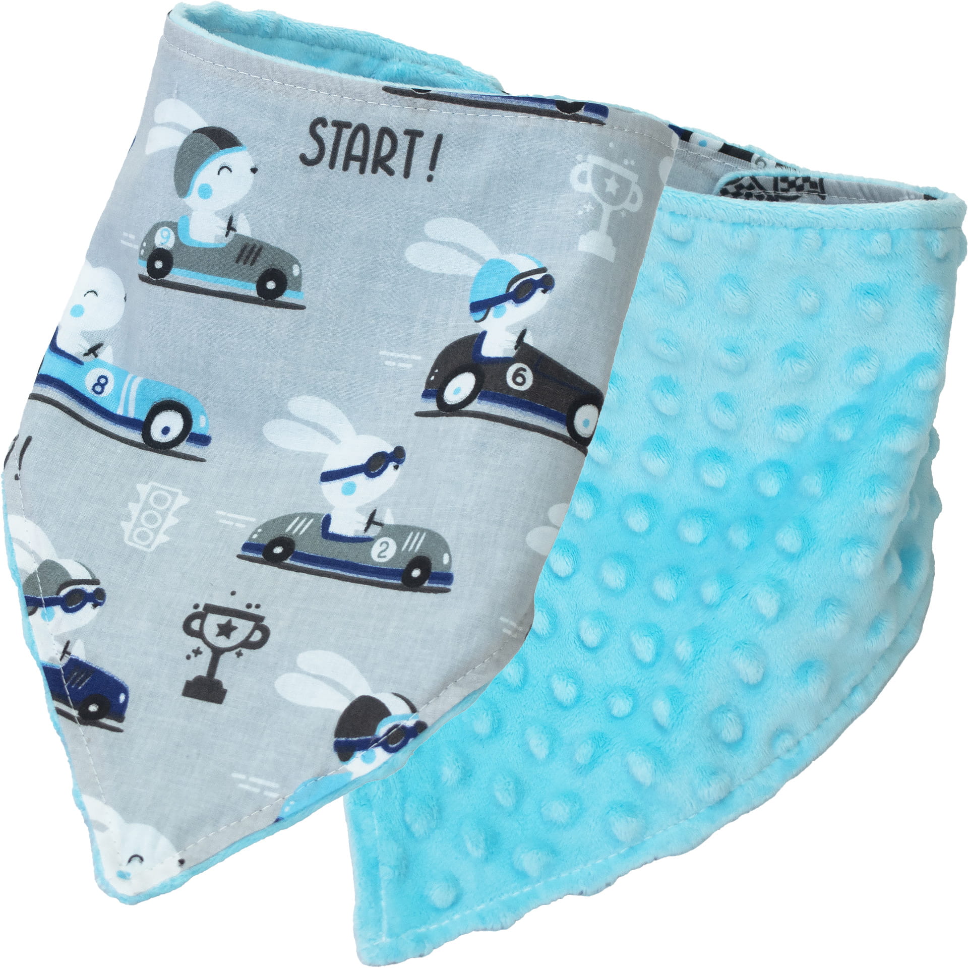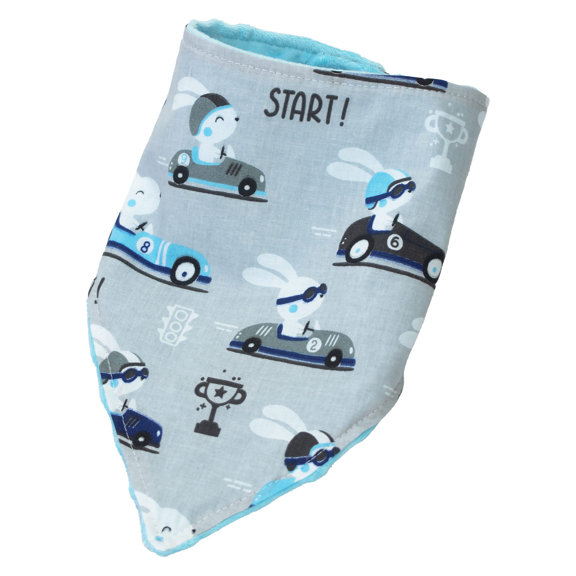 Śliniak / apaszka - Króliczki szare / Minky turkus